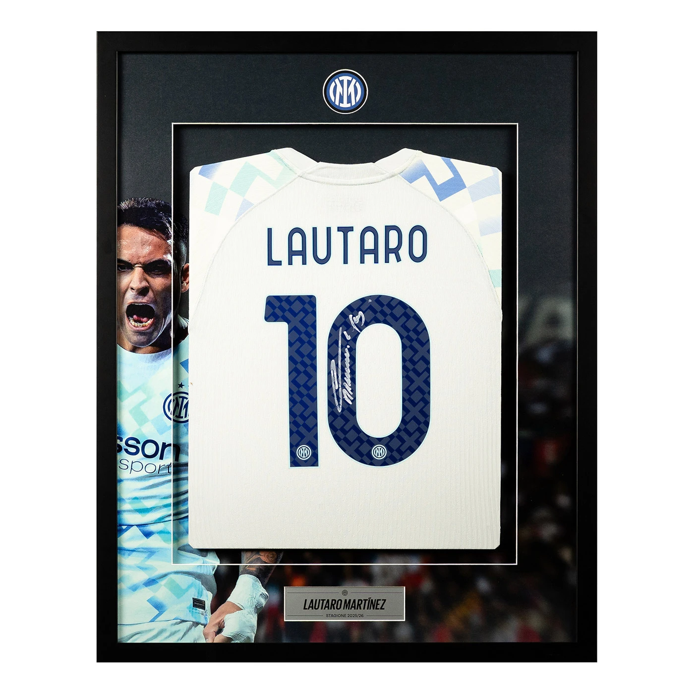 Made of the finest materials, this INTER frame is a top-quality piece of memorabilia that immortalises an Away Match Jersey signed by Lautaro.