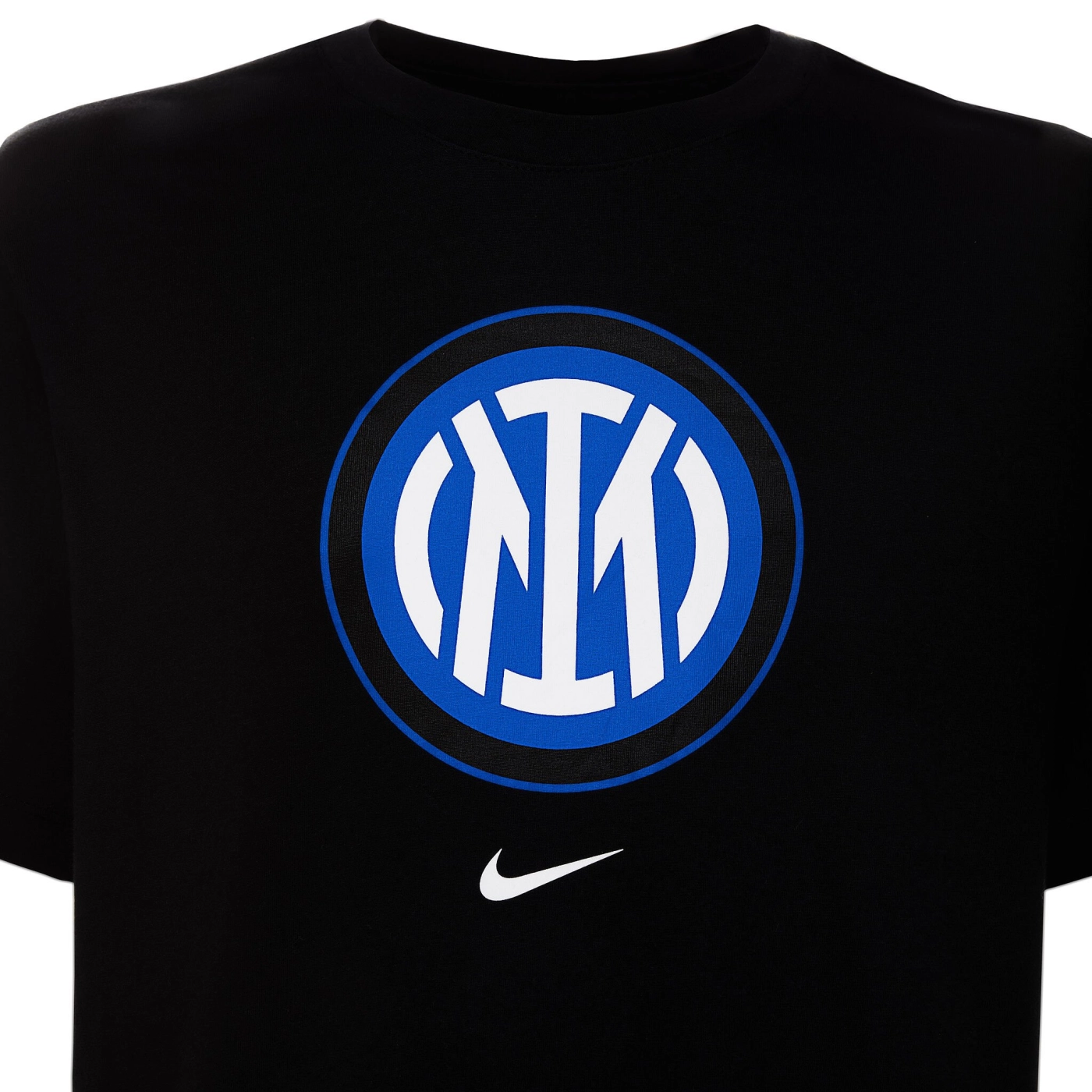 This INTER T-shirt is made of soft cotton with a ribbed neckline. Comfortable fit. The central position of the club logo and colours show your passion for the team.