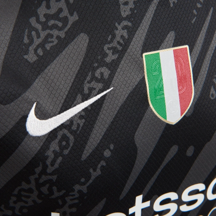 For the first time, the second star shines over the logo on the new Goalkeeper Kit 2024/25. The Stadium collection replicates original design details with breathable technology for a match-ready look inspired by the athletes on the pitch. The Nike Dri-FIT ADV technology maintains dryness and comfort. Made of recycled polyester. The shirt can be personalised with the name and number of your favourite player and you can choose to add the Lega Serie A 2024/25 or Champions League patch on the sleeve.