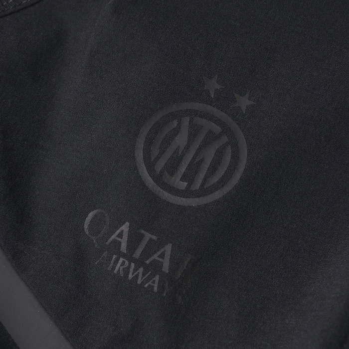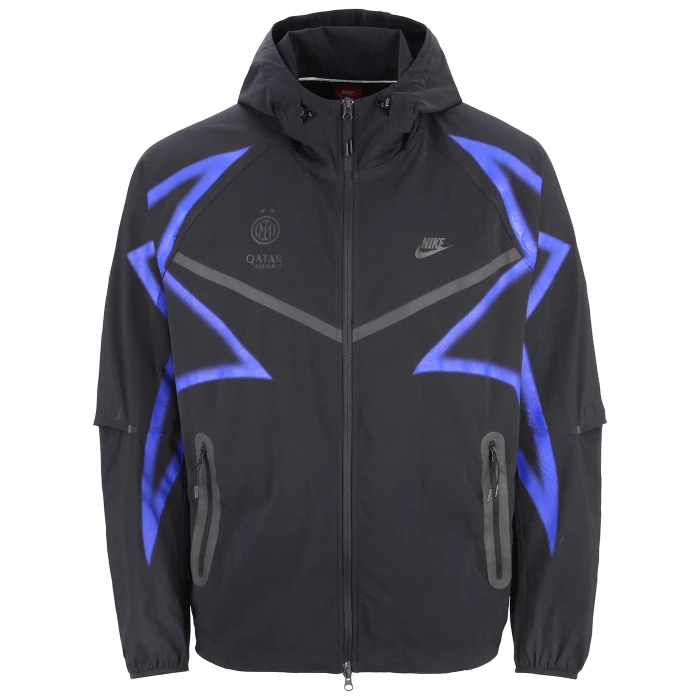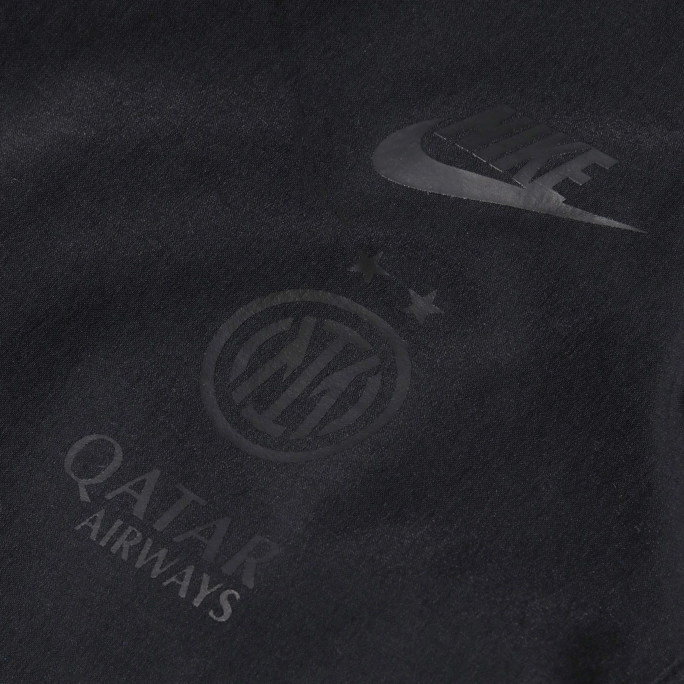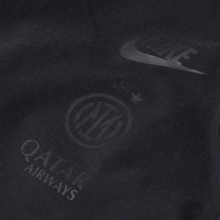 Nike Tech tracksuit featuring a coordinated jacket and trousers. The graphic details, designed as complementary elements, merge to create a star motif that symbolizes identity, unity, and Nerazzurri pride. A tribute that finds its highest expression in the shared moment of the pre-match anthem.