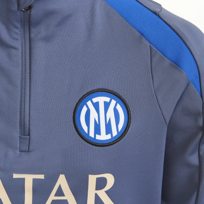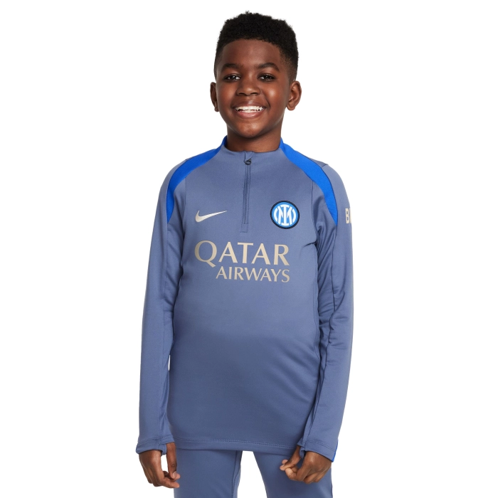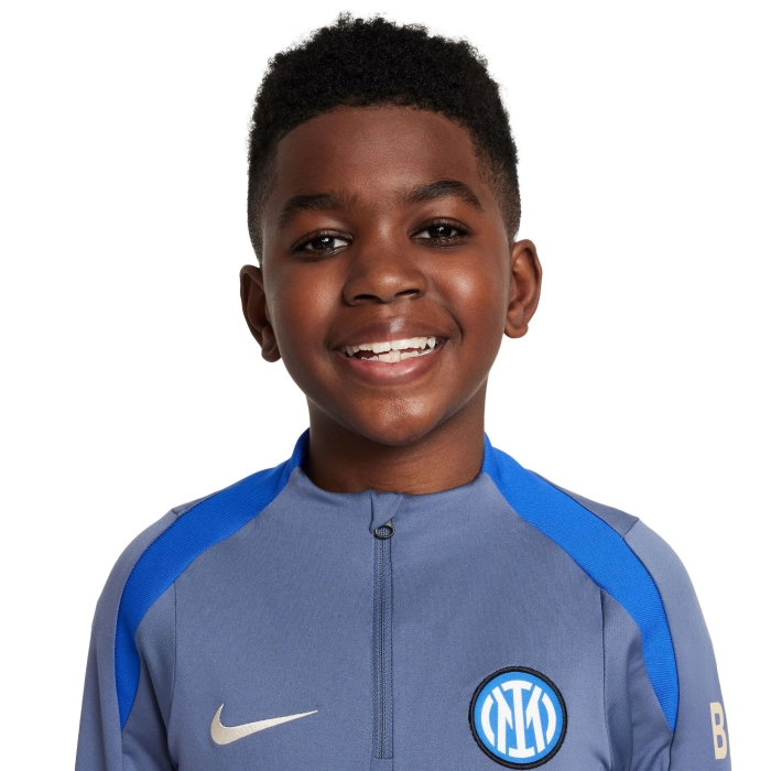 The INTER training Drill Top with long sleeves boasts design features specially tailored to football's rising stars. The snug, streamlined fit won't hinder your movement, while the breathable fabric keeps you cool and in control, allowing you to perfect your skills. Nike Dri-FIT technology wicks sweat away from your skin for quicker evaporation, helping you to stay dry and comfortable. Maximum breathability and always a perfect fit. Invisible thumb loops help hold the sleeves in place as you move and remain hidden when not in use. The hem at the back is slightly longer for constant and extra coverage. Front-opening 1/4 zip in nylon.