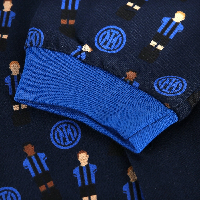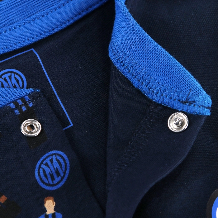 The INTER sleepsuit, made of soft cotton, keeps your little Inter fans warm thanks to its enclosed feet. The opening along the legs and front make it easy to put on. The club’s colours and crest on the heart promote Nerazzurro passion from the cradle.