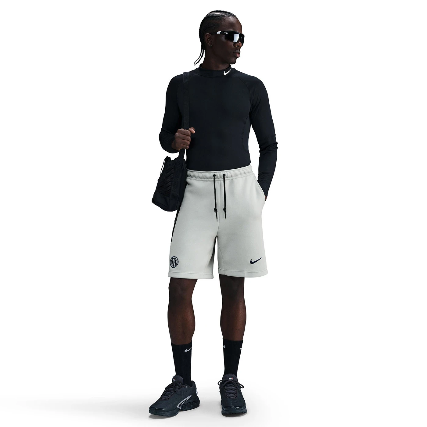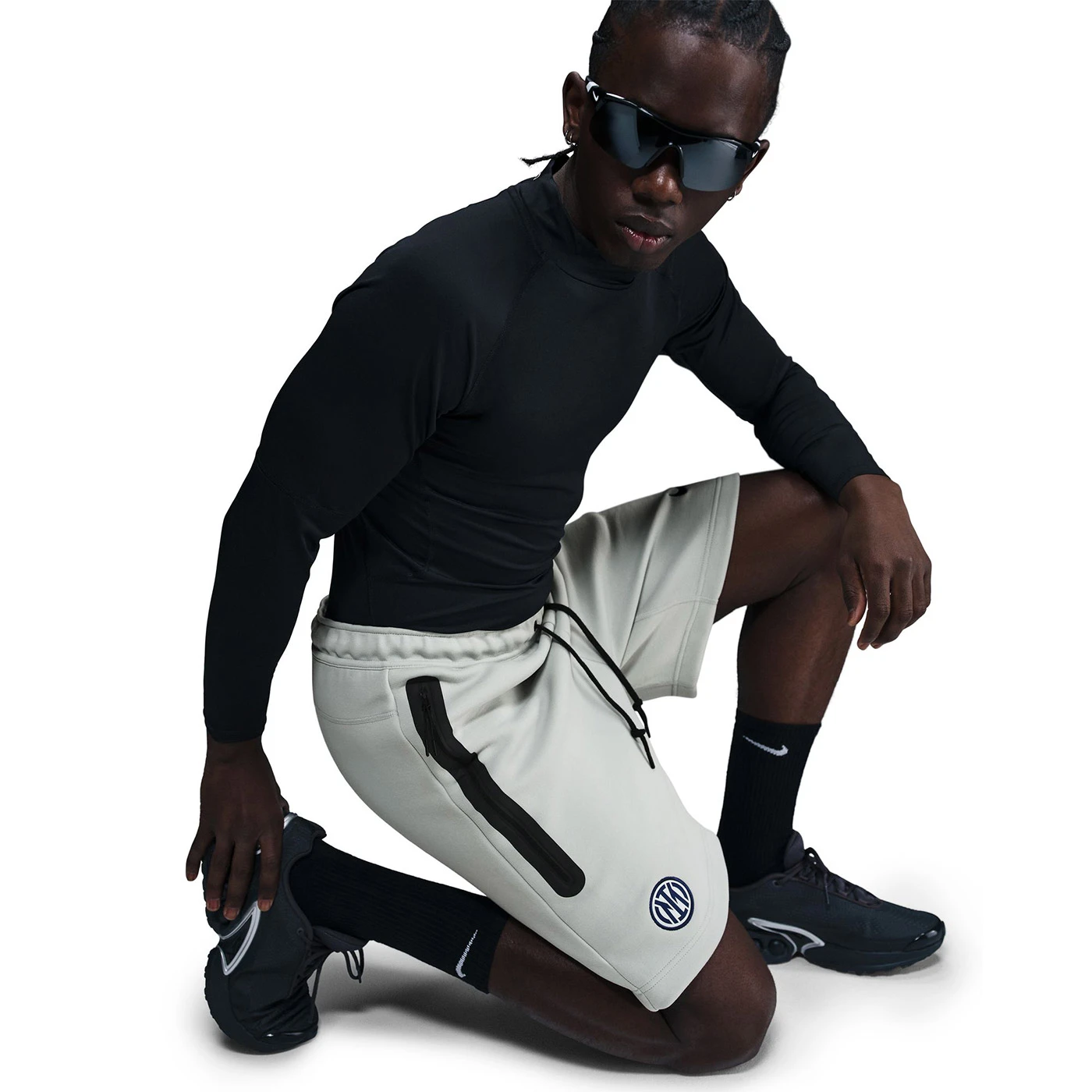 The INTER Tech Fleece shorts offer a snug fit for an essential look. Our exclusive lightweight fleece, smooth inside and out, provides ideal warmth without bulk. Ribbed high edges join the zip pocket on the right leg for secure space which matches the Tech Fleece DNA. Pair them with the Tech Fleece hoodie for a stylish split finish.