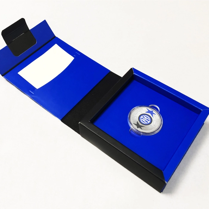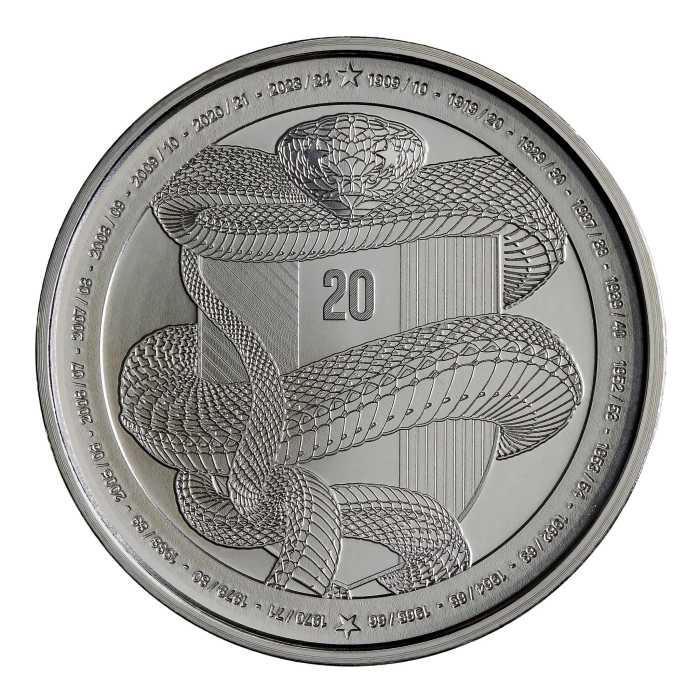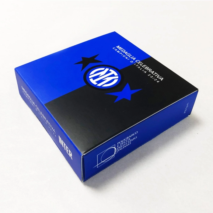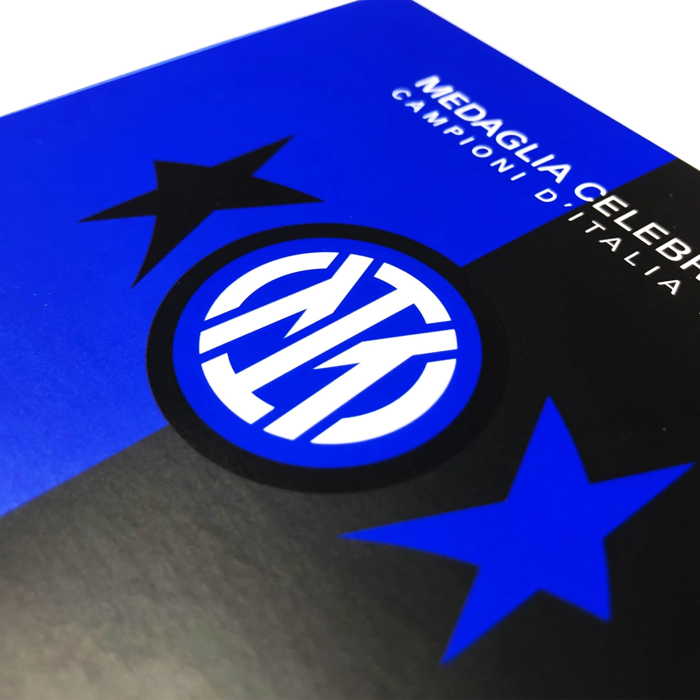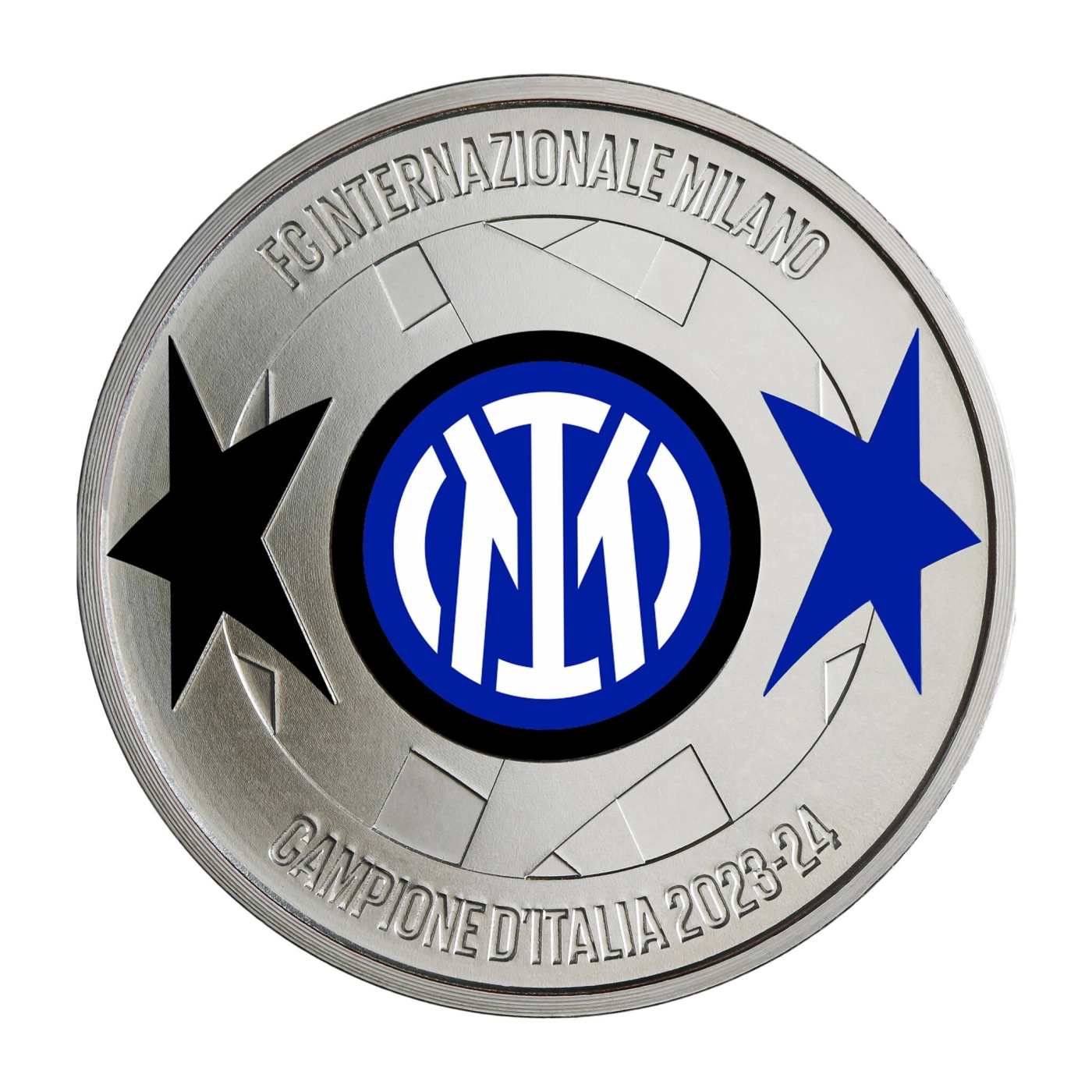 Celebrate the 20th Scudetto win and the achievement of the second star with this commemorative Champions of Italy silver medal. Features are found on the front: the INTER logo placed between 2 stars, the symbol that represents 20 league titles won, and “FC INTERNAZIONALE MILANO”, at the top, and “CAMPIONI D'ITALIA 2023-24”, at the bottom, are written around the edges. On the reverse side, there is an image of the Scudetto, with a texture that simulates the colours of the Italian flag, wrapped in the city of Milano and the Club's snake symbol. Surrounding this are references to titles won by INTER throughout its history.