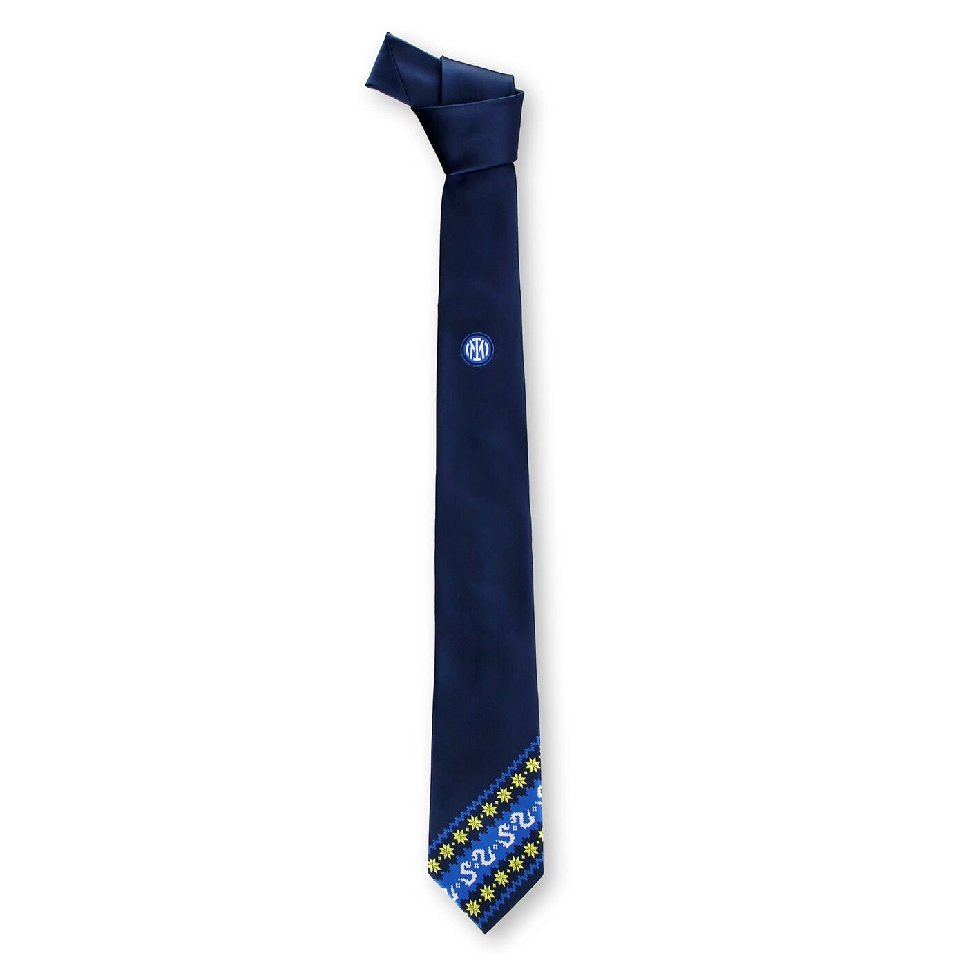 La cravatta di Natale INTER è il capo indispensabile da indossare durante le feste. Ha una fantasia natalizia abbinata al maglione di Natale. Personalizzata con il logo del club al centro.