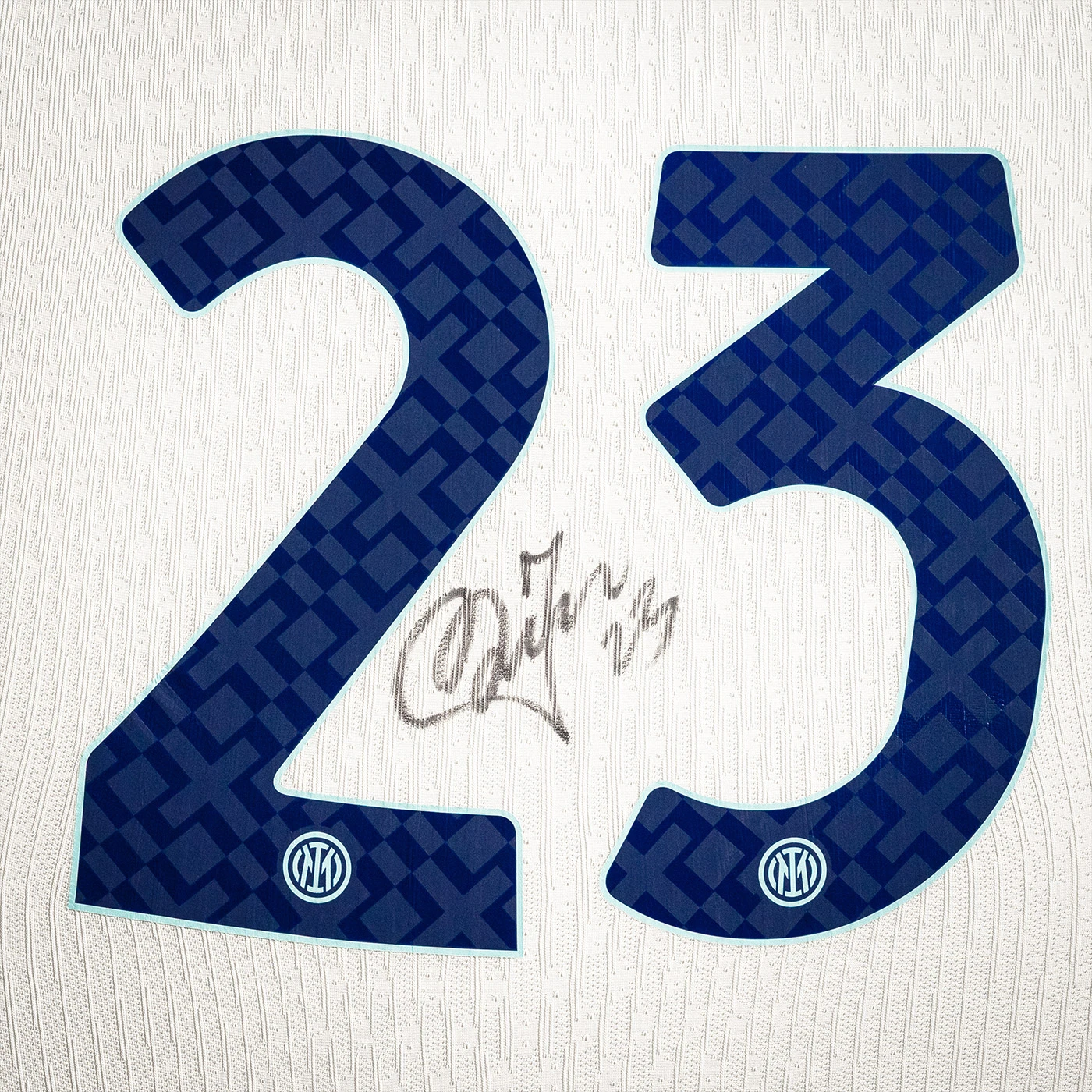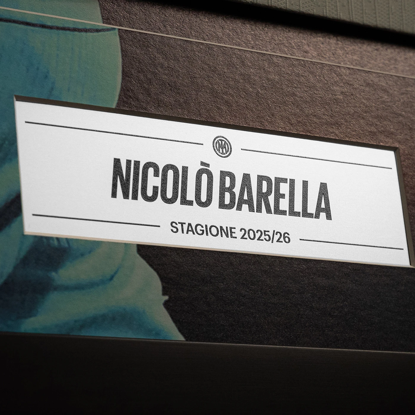 La cornice INTER è un memorabilia di prima qualità, realizzata con i materiali più pregiati, ed immortala la Maglia Gara Away Match firmata da Barella.