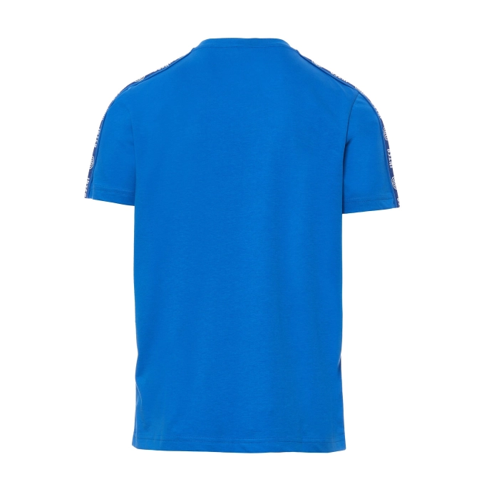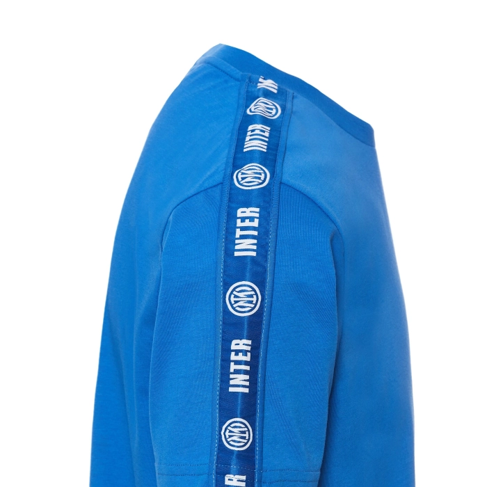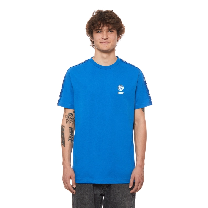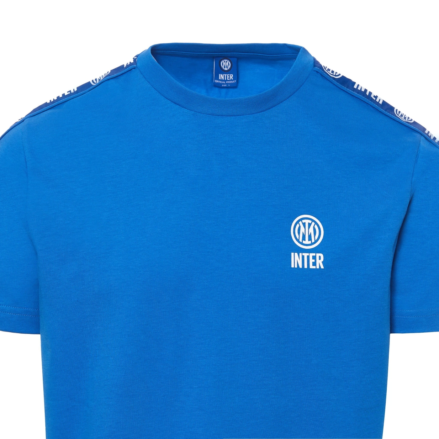 La t-shirt INTER è il capo ideale per la tua estate. Il dettaglio del nastro logato in contrasto colore applicato lungo le spalle e le maniche la rende un capo da indossare in qualsiasi occasione per comunicare la tua passione per la squadra. Logo crest in posizione cuore, vestibilità regolare