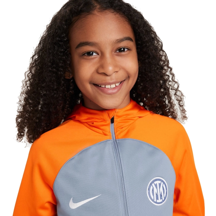 La tuta allenamento INTER sfoggia dettagli di design specificamente pensati per le stelle nascenti del calcio. Il fit casual e rilassato si abbina bene al tessuto traspirante che assicura freschezza per consentirti di affinare le tue abilità con la massima concentrazione. La tecnologia Nike Dri-FIT allontana il sudore per favorirne una rapida evaporazione e mantenere la pelle asciutta per un comfort eccellente. Le tasche con zip ti permettono di riporre al sicuro i tuoi oggetti indispensabili. Le zip nella parte inferiore della gamba consentono cambi rapidi senza togliere le scarpe. Polsi e collo con maglia elasticizzata.