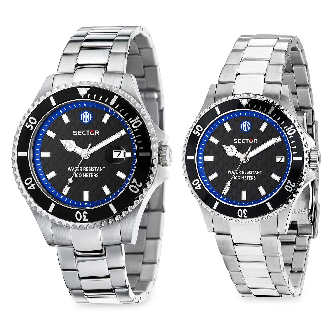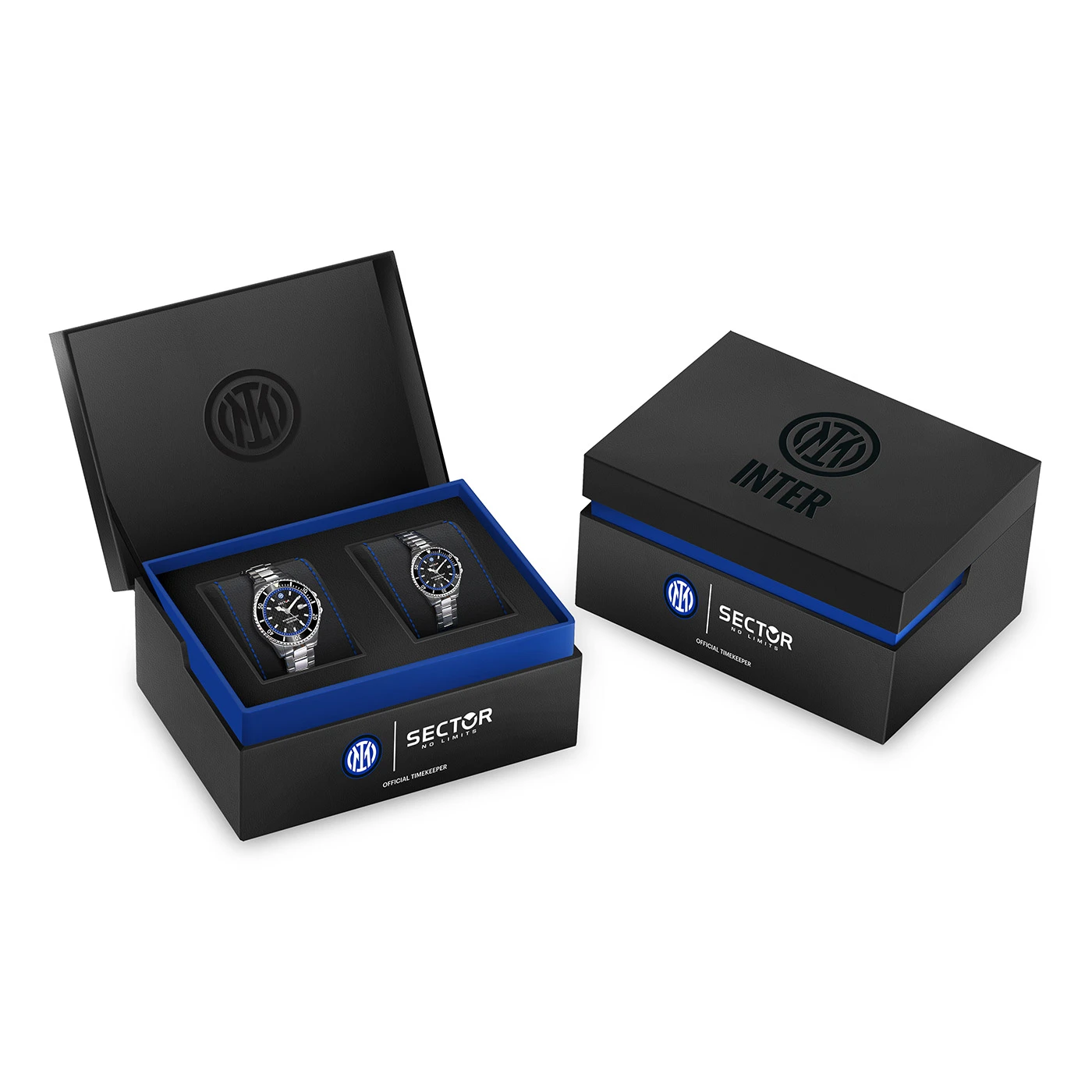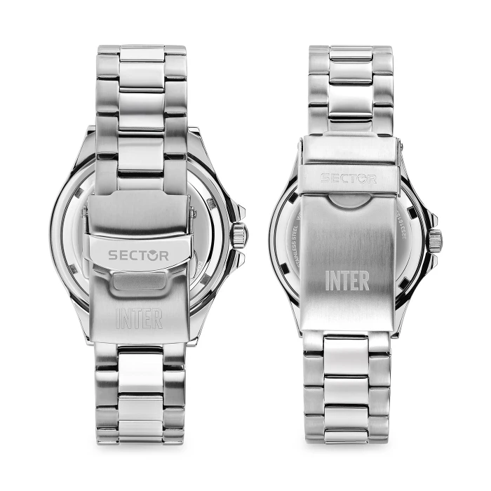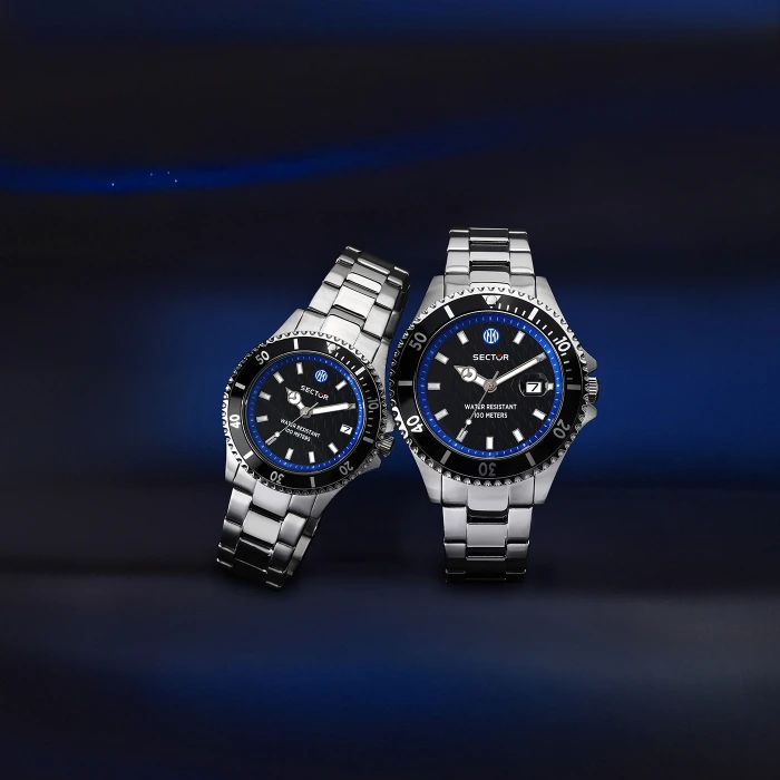 Sector celebrates Nerazzurri passion with a special box set featuring two watches with exclusive design, available with 43 mm and 35 mm cases — perfect to wear as a pair or between father and son. The black dial, enhanced by a snake-scale pattern inspired by the “Biscione” — the historic emblem of the club and the city of Milan — is enriched with the Inter logo at 12 o’clock. The blue rehaut creates an elegant contrast with the black bezel and dial, recalling the team’s iconic colors. A prestigious set designed to live and share, every day, the Nerazzurri pride.