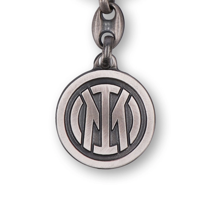 This INTER keyring is a unique accessory. It is made of silver-plated metal and features the club logo.