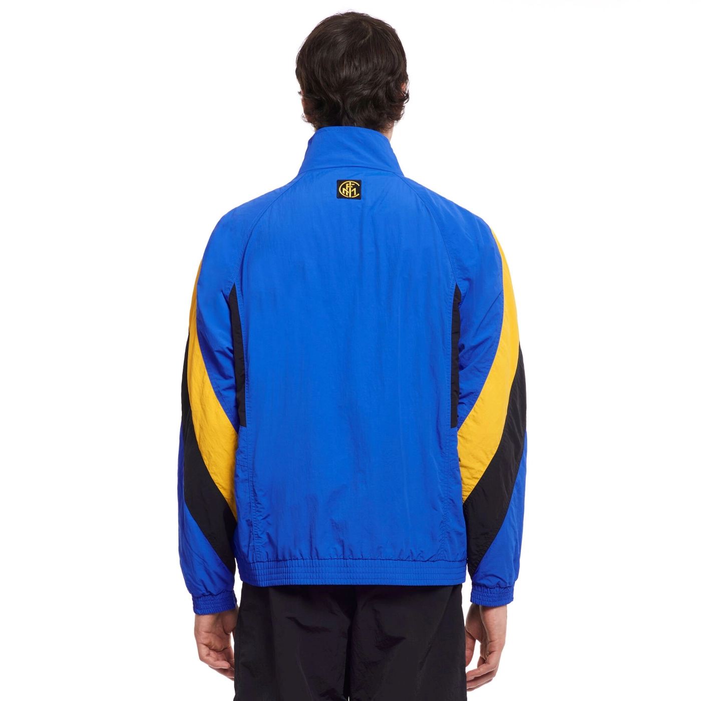 The 1997/98 retro jacket is made of 100% nylon with an inner lining of 100% polyester. The jacket has an oversized fit with beautiful embroidered elements complemented by contrasting fabric inserts.