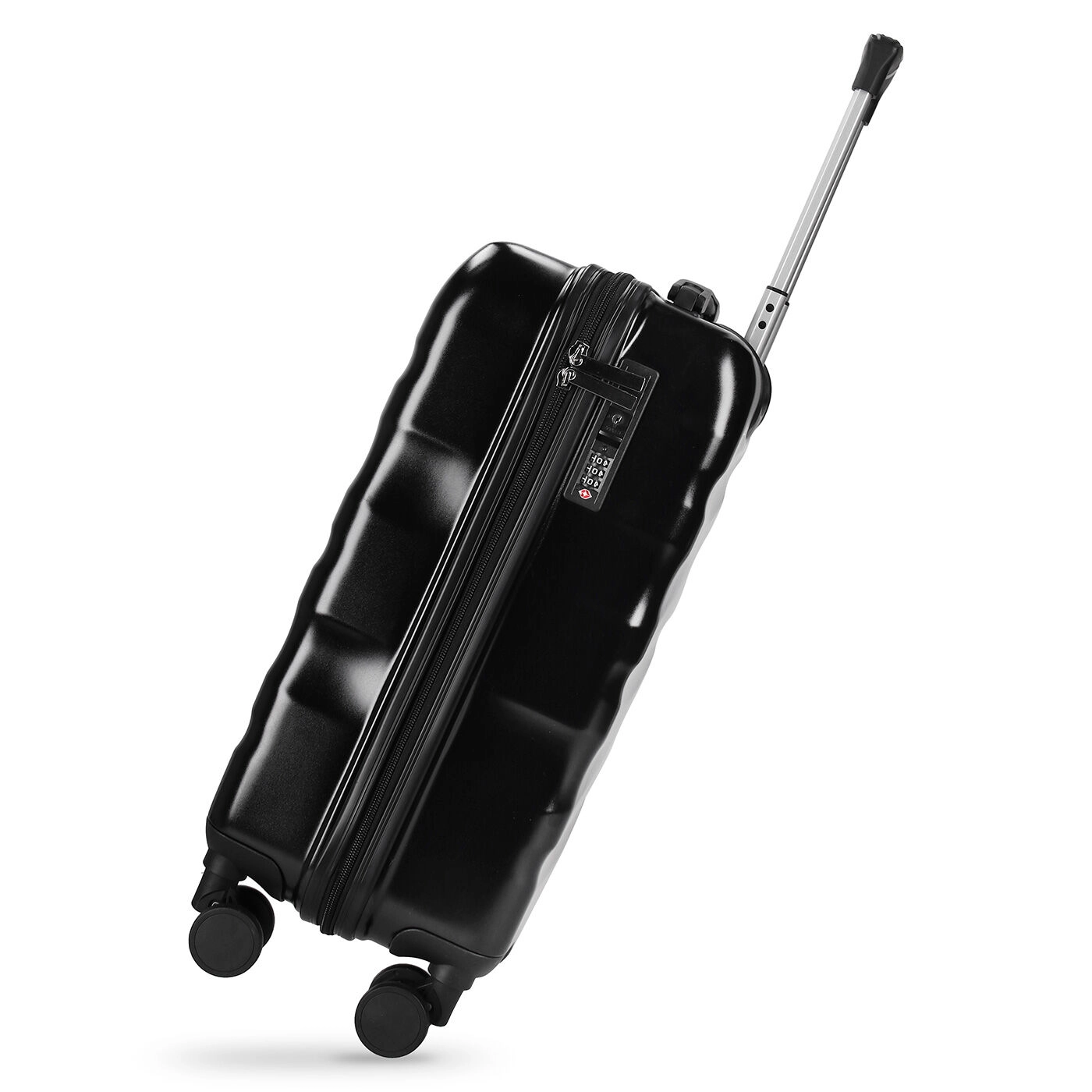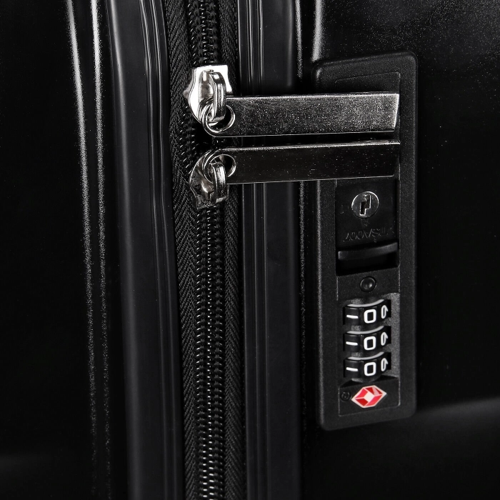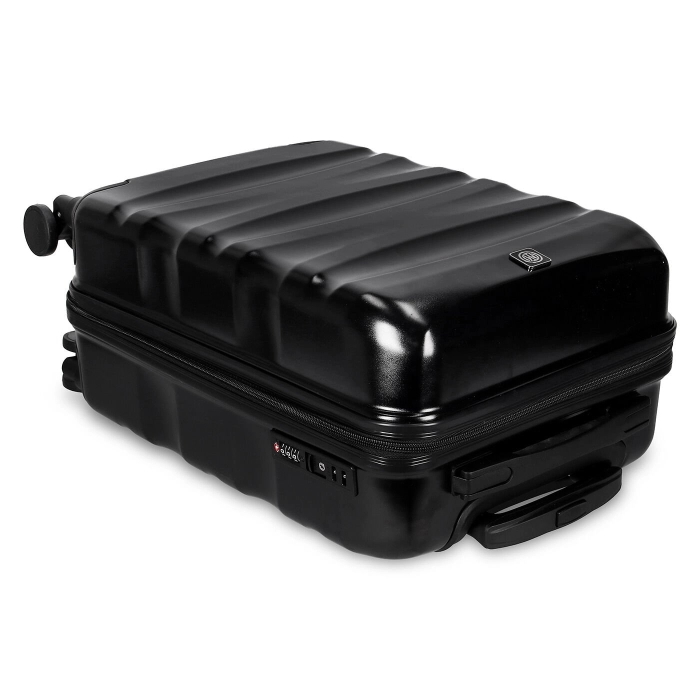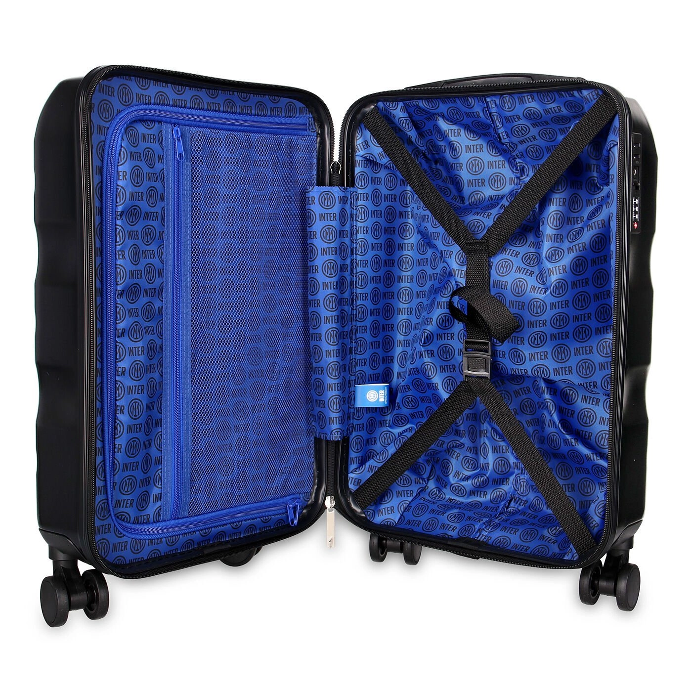 The INTER trolley bag is the ideal suitcase to use for your travels and weekends away. The black hard shell protects even the most fragile items and ensures the bag’s strength and durability. The 4 swivel castors guarantee smooth mobility in any direction, whilst the handle on top for lifting/carrying and the built-in telescopic handle guarantee comfort and manoeuvrability. The zip with an integrated 3-digit combination lock assures the highest degree of security. The trolley bag is personalised with a silver INTER logo plaque on the black shell, making it unique and unmistakable.