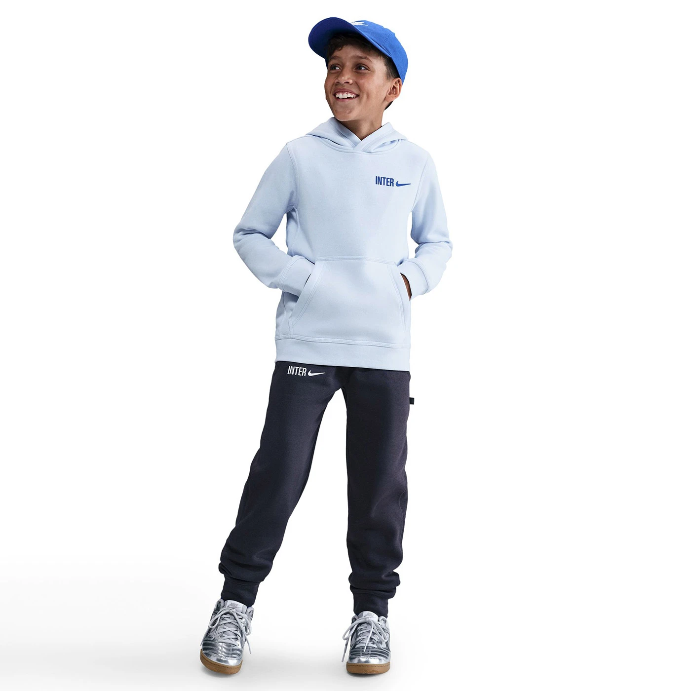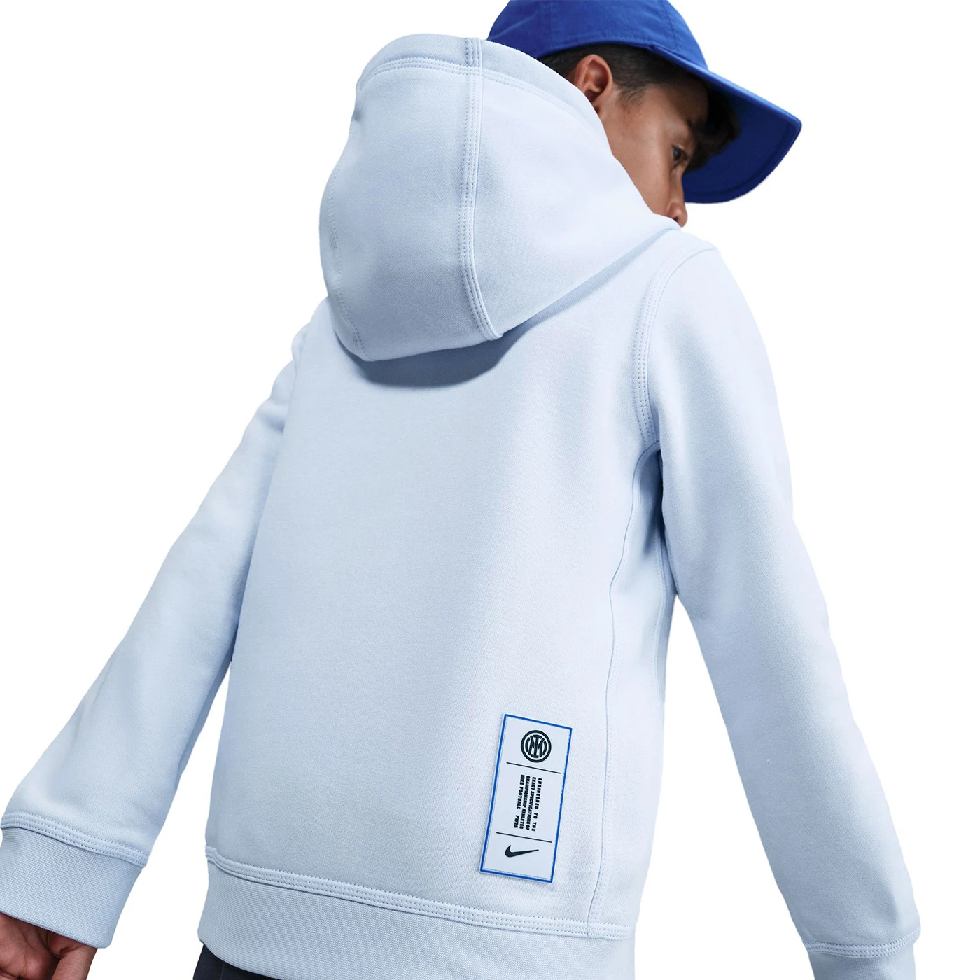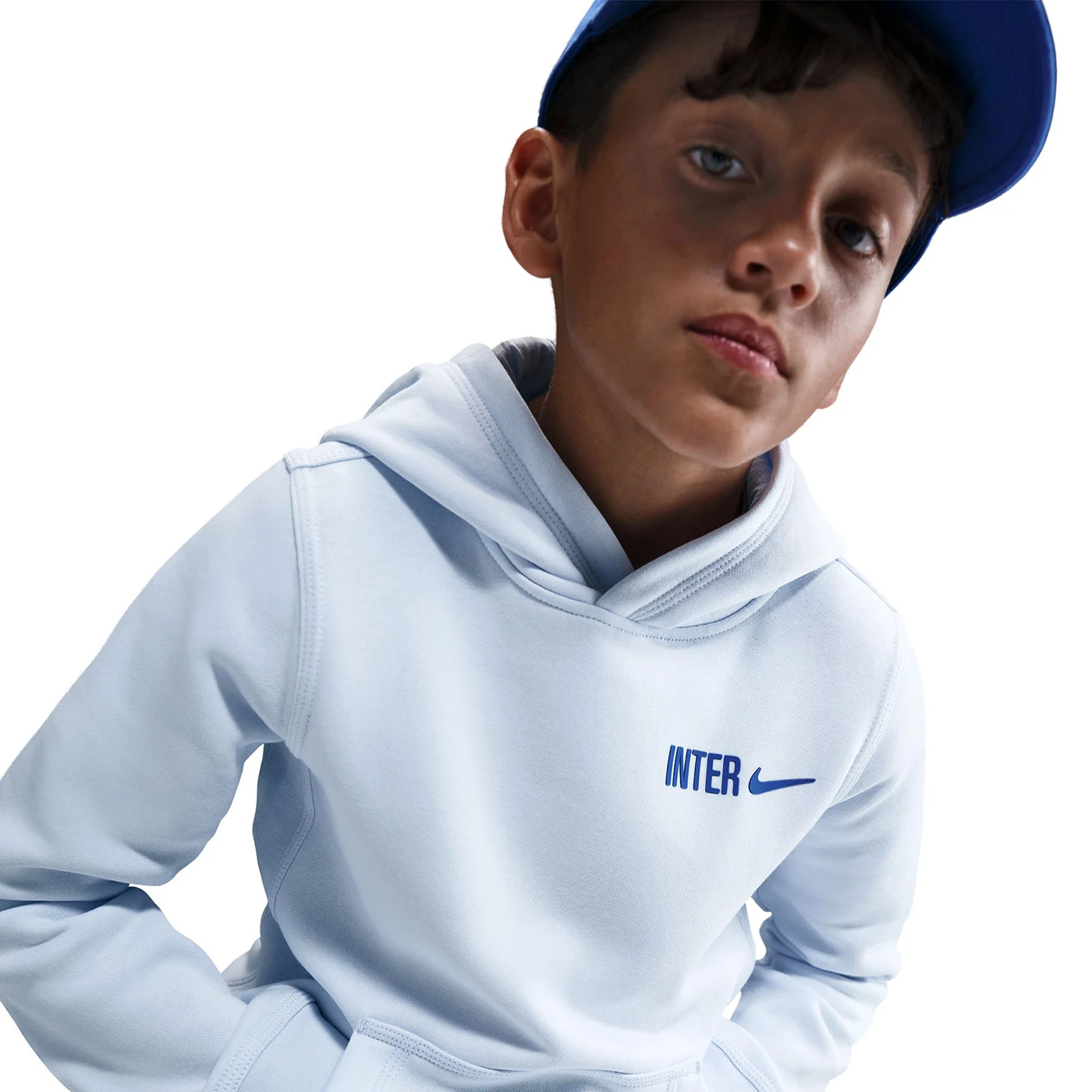 Essential, soft and comfortable: this Nike hoodie combines clean lines and premium materials for a simple, versatile look. The mid-weight brushed fleece feels warm and smooth against the skin, offering everyday comfort with a refined finish. The Football Grey tone adds an elegant, icy touch, while the INTER logo and Nike Swoosh in Lyon Blue provide a subtle yet distinctive contrast. Product details – Body: 80% cotton / 20% polyester – Hood lining: 100% cotton – Rib: 97% cotton / 3% spandex – Machine washable – Imported – Color shown: Football Grey / Lyon Blue – Official Inter | Nike product